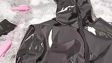 [R18 ] PVC bodysuit Japanese Sissy Solo Cum with toy (@rik dejavu)