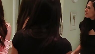 "Two Gorgeous Busty Brunette Babes Sharing A Big White Cock"