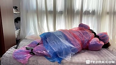 "NANA Zentai and plastic 3 layers mummy bondage"