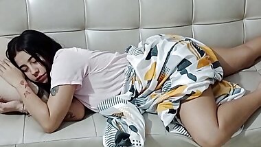 "My stepbrother surprises me with his cum on my leg - Porn in Spanish"