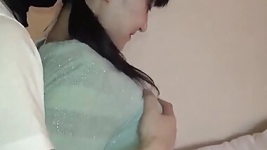 She puts on her favorite bright white underwear and as she touches her boobs, there is a stain on her panties...