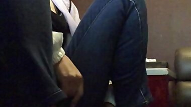 "Lucky Asian guy gets his dick sucked and ass licked by a sweet girl"