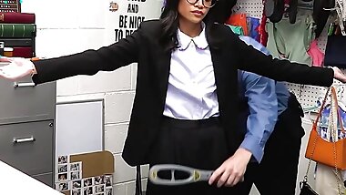 "Nefarious Mall Cop Lays Down For A Young Asian Thief By Banging Her Pussy On His Desk - Shoplyfter"