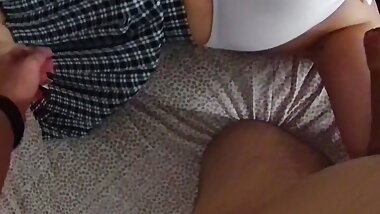 "The husband got an erection at the sight of his wife in her school uniform and began shaving her pussy!"