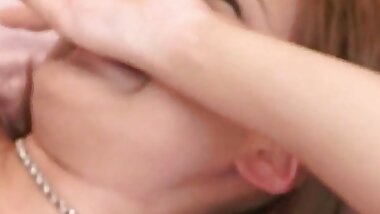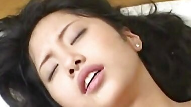 "To show off her Asian blowjob technique the brunette blows him until he starts cumming"