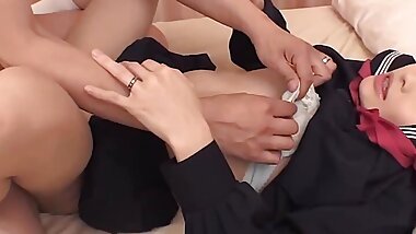 "Petite asian student teen get hard gangbang with creampie"