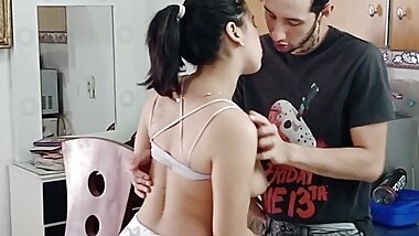 "My stepbrother's horny girlfriend wants to have my cock inside her pussy while the cuckold comes home - Porn in Spanish"