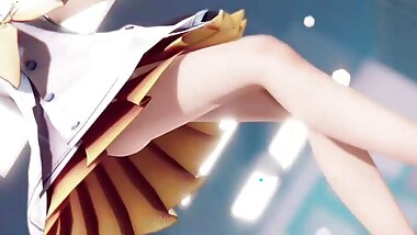 "Rin - Sexy Teen With Big Ass In Stockings & Sexy Skirt Dancing + Gradual Undressing (3D HENTAI)"